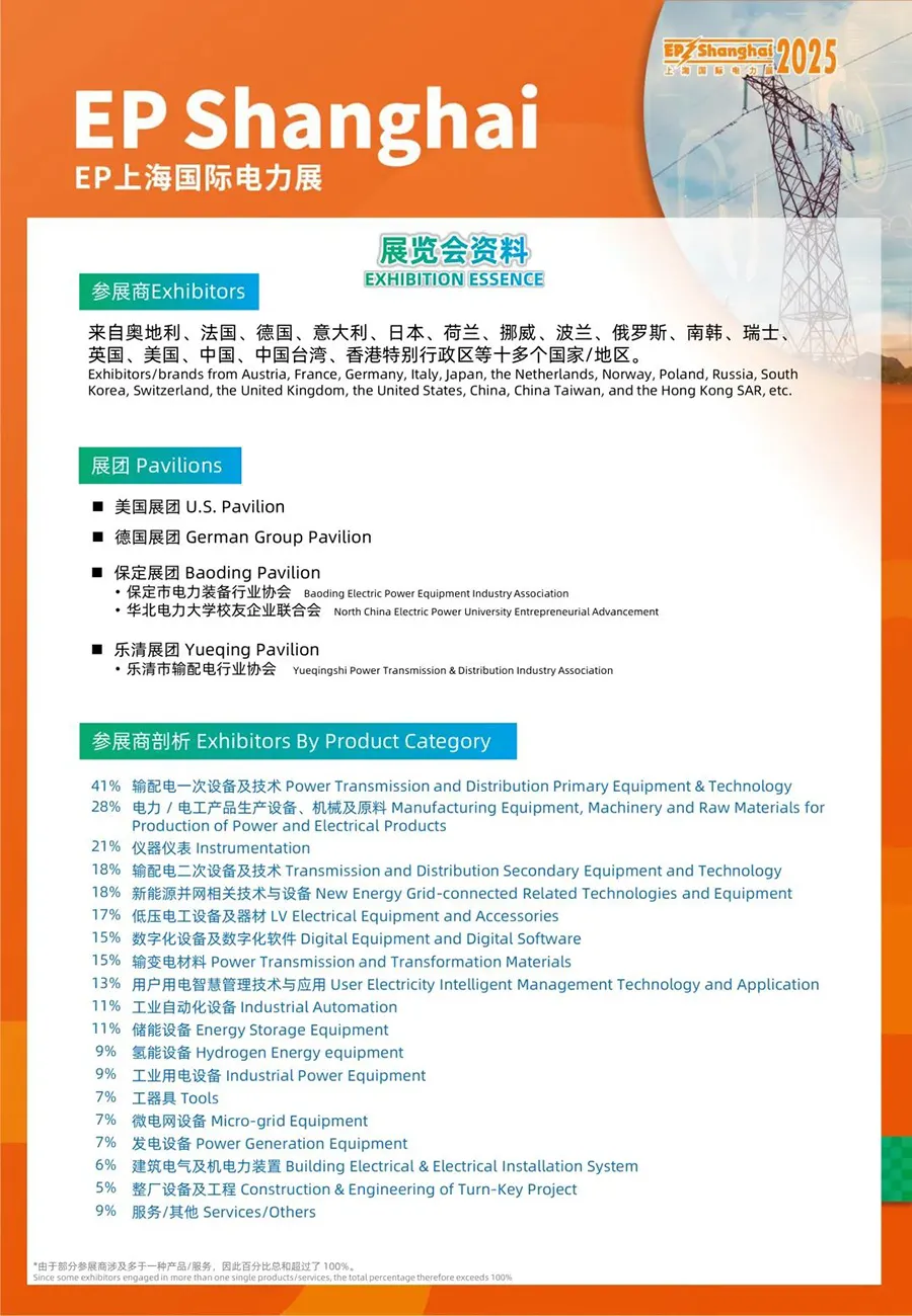 ![]() 第三十二届中国国际电力设备及技术展览会(简称:EP电力展)在上海新国际博览中心圆满落幕。作为电力行业极具影响力的专业平台,展会致力于打造全球化电力产业生态圈,汇聚了众多海内外知名参展商与专业买家,共同推动电力技术国际化交流与合作平台的搭建。 展后报告 ![]() ![]() ![]() 展商品牌数量:1845+ 本届展会以“数智赋能、打造源网荷储新生态”为主题,聚焦“十五五”新能源发展、能源转型与数字化趋势,源网荷储一体化、智能化、低碳化等行业热点。涵盖六大核心板块:一站式输配电、电力自动化、能源数字化、新能源与储能馆、氢能主题区、电力智能制造装备,汇聚了国内外知名展商展示输电、变电、配电、储能、氢电,用电等产业链,展示供应链各环节的新产品、新设备、新技术及解决方案。 ![]() 开幕式 EP电力展开幕仪式&中国电力企业联合会2025年年会暨第七届理事会第八次会议在嘉里大酒店共同举办,开幕现场汇聚了来自能源央企、制造龙头、科研院所及行业组织的400余位领导、专家与技术人员,共同围绕数字能源与新质生产力培育、产业链协同与技术创新等议题深入交流,携手构建开放合作、共赢共享的电力产业新生态。 ![]() 同期论坛议题紧扣行业前沿,覆盖了从微电网、虚拟电厂、零碳园区、氢电协同与电力智能机器人等关键技术,并开展电力、新能源、石化、医院及数据中心等核心行业的应用场景系列分论坛,吸引了大量专业人士,现场气氛热烈,座无虚席。 ![]() 来自86多个国家\地区,总计:8116人 随着EP电力展的国际化宣传范围扩大与全球影响力提升,2025年展会现场的国际面孔显著增加,海外专业人士随处可见。海外观众分别来自巴西、韩国、伊朗、哥伦比亚、中东、不丹、印度、菲律宾、印度尼西亚、泰国、俄罗斯、白俄罗斯等国家和地区的行业组织与采购代表团纷纷到访参观、洽谈合作。 ![]() 参观团总数:525家单位,同比增长54% EP电力展组委会积极邀请电力行业协会、电力工程单位、设计院、总包方,高耗能工业用户等专业买家团体参观。据统计,今年国内外参观团总数520余家,2025年参观团总数比2024年参观团总数增加了54%。为促进展商与买家高效对接,EP电力展组委会提供了多元化的配套服务,包括商贸配对、团体导赏、工厂参观及外语翻译,以促成更密切的合作交流。 ![]() ![]() |