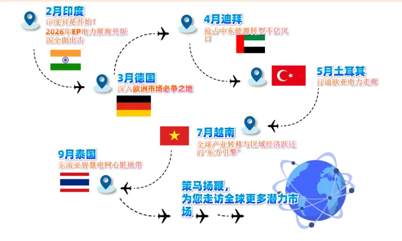 ![]() 2026年EP电力展 展览时间:2026年12月3-5日 展览地点:上海新国际博览中心 主办单位:中国电力企业联合会 承办单位:雅式展览服务有限公司 ![]() 在“双碳”战略目标的引领下,新型电力系统建设正加速推进。作为电力行业发展的风向标,EP电力展始终紧扣新型电力产业脉搏,与行业发展同频共振、协同共进。展会规模与品牌影响力持续扩大,成效逐年凸显,为推动能源转型与产业升级注入强劲动力。 ![]() 2026年EP电力展将再度全新升级,展馆规模进一步扩大,整体规划达到7个展馆。EP电力展作为输配电领域规模最大、服务最全的平台,全面覆盖从高压到中低压的全系列配电设备,以及变压器、开关柜等一次设备与继电保护、监测终端等二次融合设备;展会致力于为工业用户提供安全、智慧、绿色的用电场景解决方案,全方位呈现新型电力系统的全产业链。为深度赋能能源电力产业升级,展会采取“多展联动”战略,同期举办“ES储能展”“数据中心展”与“氢能展示区”,推动储能、数字化与氢能技术在电力场景中的融合创新。 ![]() ![]() 2026年EP电力展迎来40周年,作为能源行业发展的见证者,亲历了中国电力从技术追赶到创新引领的蝶变历程。如今,站在新起点,展会持续汇聚全球前沿技术与解决方案,构建能源领域国际化交流与商贸合作平台,赋能中国企业开拓海外市场,积极为全球能源低碳转型贡献中国力量。 ![]() ![]() ![]() ![]() ![]() 2025年EP电力展聚焦行业热点,设立储能、氢能、变压器及电力机器人等主题展区,看点十足,得到专业观众的高度关注与热烈反响。2026年,这些主题展区将迎来全面升级,带来更好的互动体验,让我们拭目以待吧! ![]() ![]() ![]() ![]() ![]() ![]() ![]() ![]() ![]() ![]() 新型电力系统、能源数字化、虚拟电厂/微电网、新能源-消纳并网、新能源-储能/氢能...... |